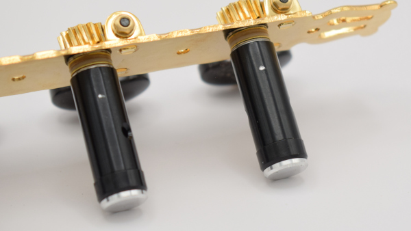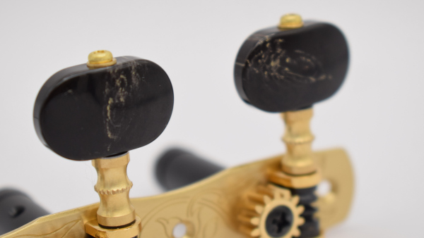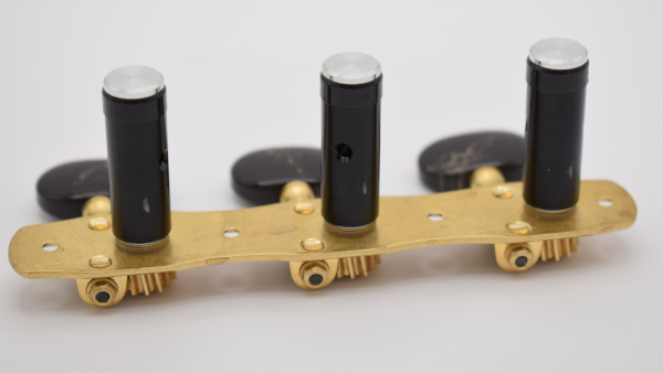 An elegantly engraved plate of solid brass with a 14:1 gear ratio and the black alloy roller with bearings. Comes with the economical polymer buttons. Price reduced because of slight roller damage in shipping.