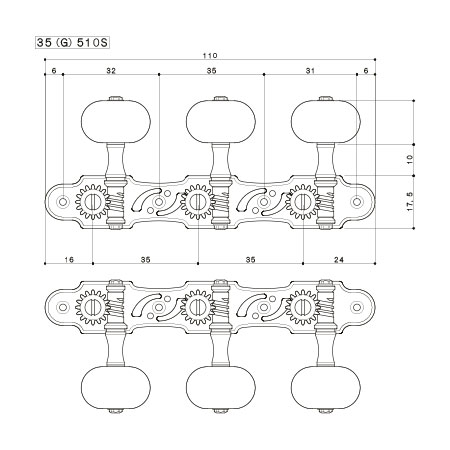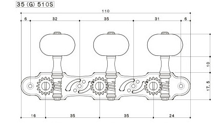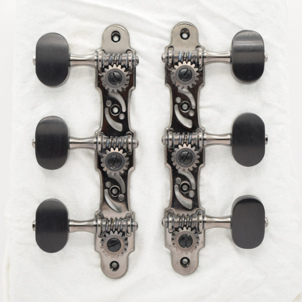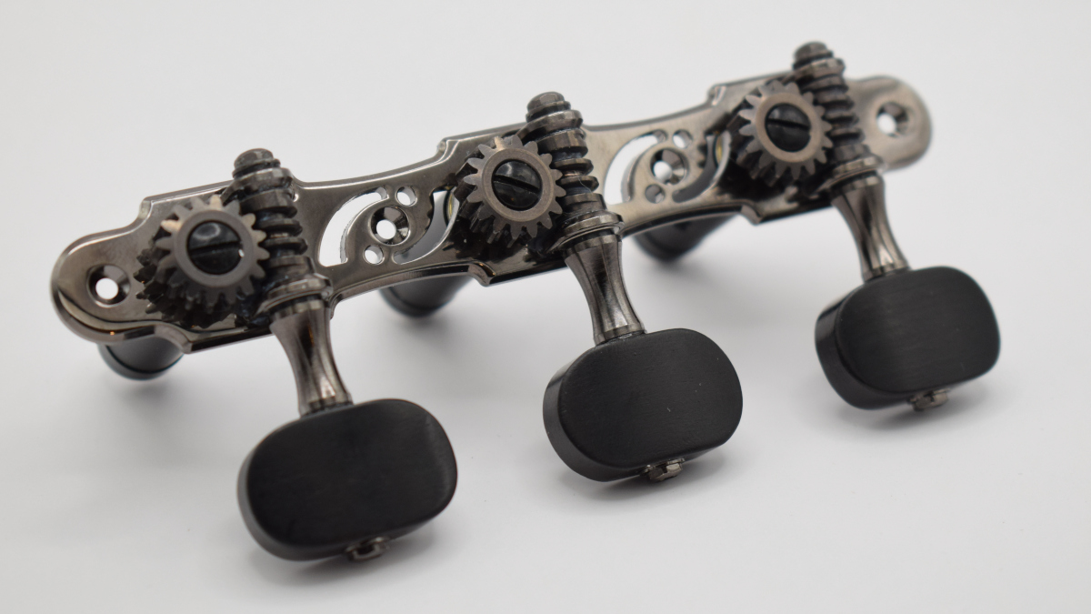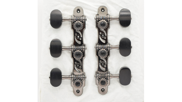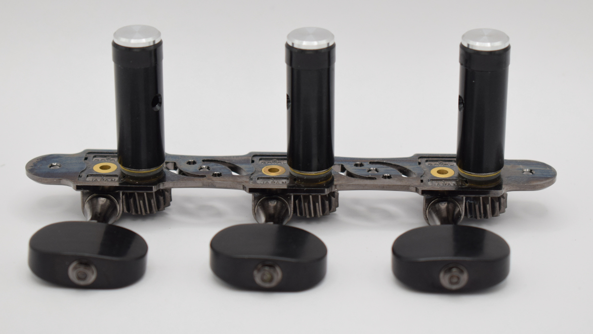 An professional grade tuner by Gotoh with an aluminumn plate finished with cosmo-black, real ebony buttons, rollers with bearings, and Gotoh's 1/16 gear ratio.